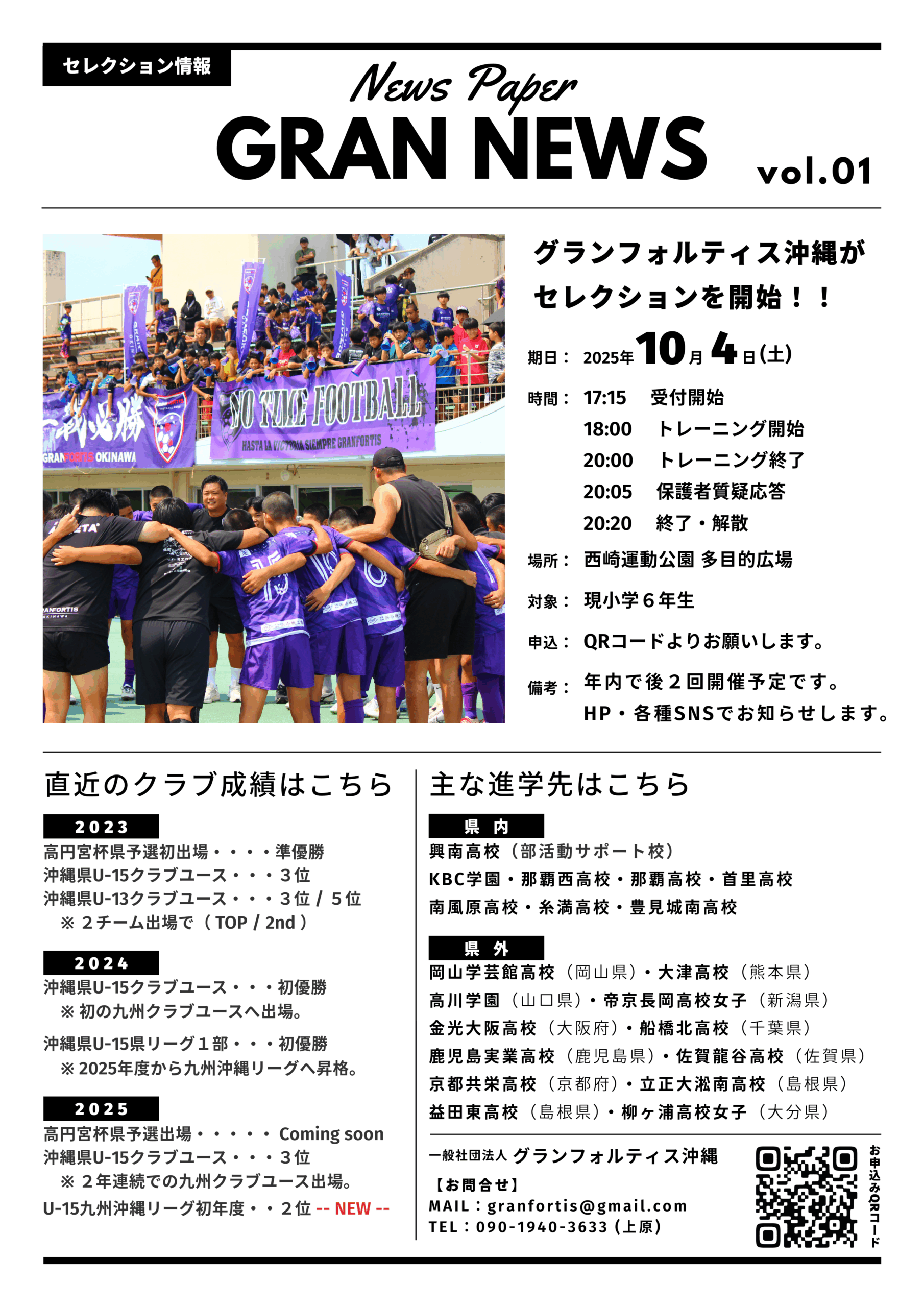 覚悟を持って当クラブでサッカーをしたいと思う選手のご応募をお待ちしております。